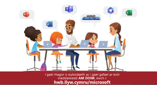 Mae hyn yn cynnwys Word, Excel a PowerPoint, yn ogystal â Minecraft Education. Mae hyn hefyd ar gael i ddefnyddwyr Hwb o bartneriaid gwella ysgolion ac awdurdodau lleol.